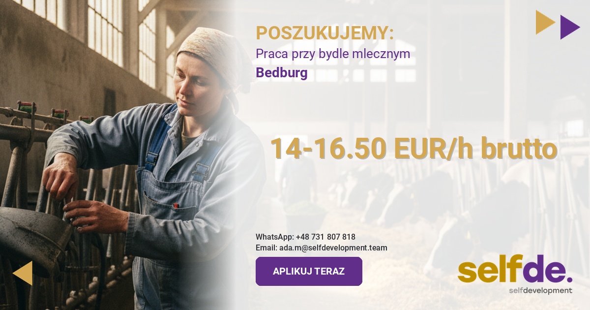 SelfDevelopment poszukuje pracownika do pracy w Niemczech, miejscowość 47551 Bedburg-Hau.