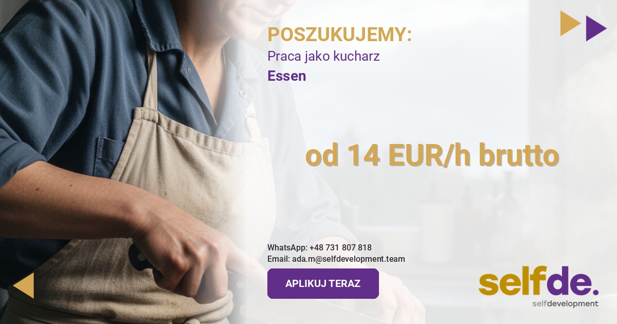 SelfDevelopment poszukuje pracownika do pracy w Niemczech, miejscowość 45136 Essen.